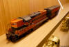 Den andre veggen er viet amerikansk jernbanehistorie - eller rettere sagt noen spesielle sider ved denne. Her er to av høydepunktene i amerikansk damplokutvikling, et par typiske diesellok, men det som virkelig fanger blikket, er to umalte messingmodeller av to ulike typer dampmotorlok. Disse lokene skiller seg fra vanlige lok ved at kraften ikke overføres direkte fra sylindrene via trekkstenger til hjul montert direkte i rammen, men via veivaksler og girdrev til hjul montert i boggier. Lokene er derfor ekstremt fleksible og egner seg til dårlig lag skinnegang. De ble først og fremst utviklet til enkle, flyttbare baner der skinnegangen gjerne ble lagt direkte på bakken, uten noen form for underbygging, og brukt ti å frakte tømmer fra hogstområdene ut til omlastingsplasser der det kunne lastes om på ordinære jernbaner. Dampmotorlokene kunne kjøres i ekstremt lave hastigheter, men spesielt Heisler-typen kunne også oppnå hastigheter so gjorde dem egnet på ordinære sidelinjer. Dampmotorlok ble lite brukt utenfor USA, Canada og Australia. Forhåpentlig vil denne veggen bli utviklet videre og etter hve3rt gi et mer representativt bilde av amerikansk jernbanehistorie.