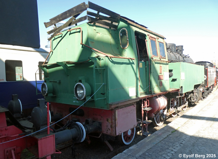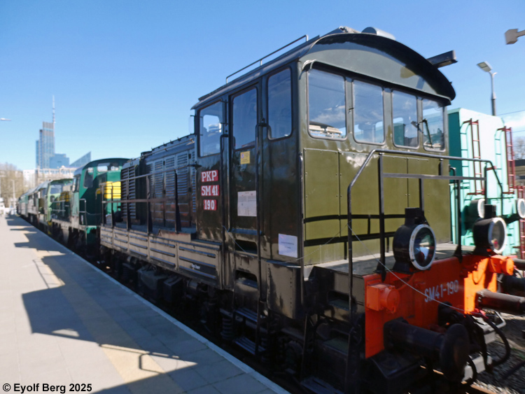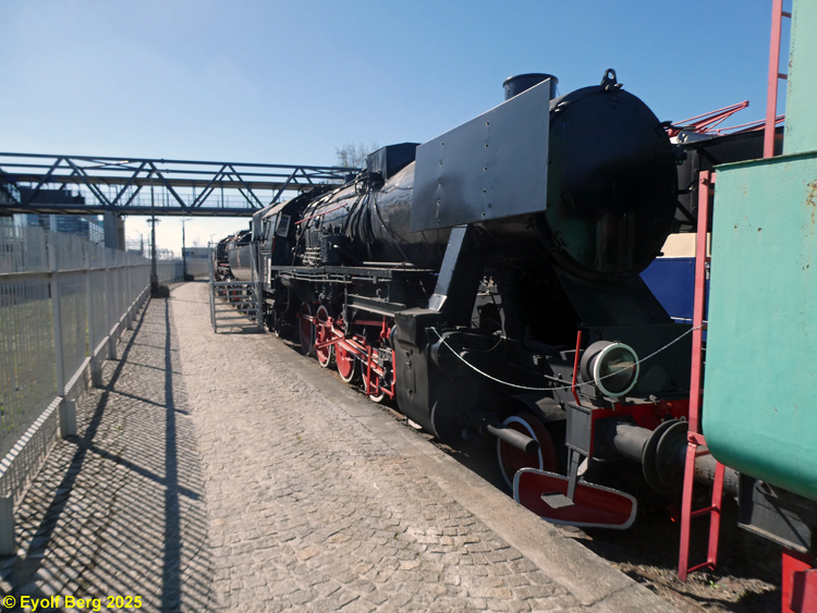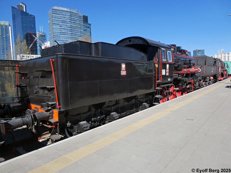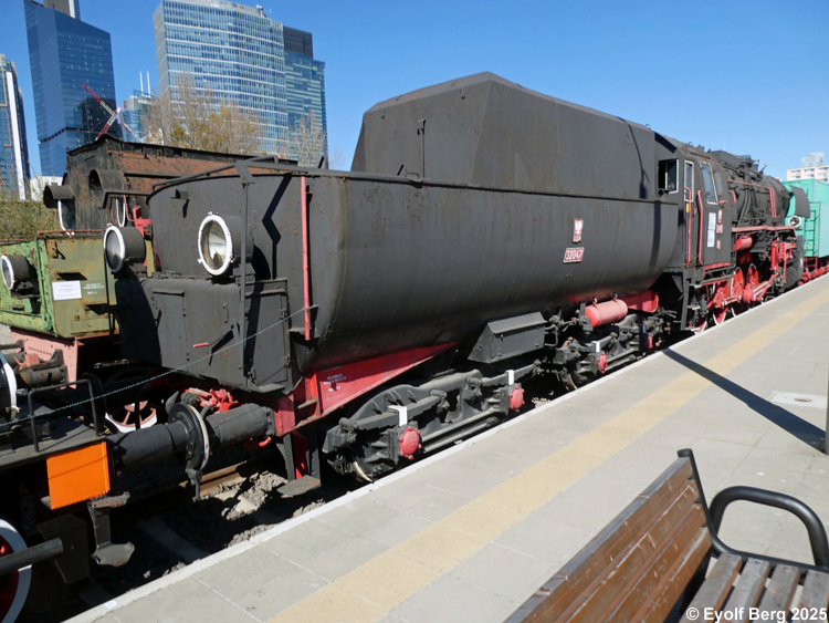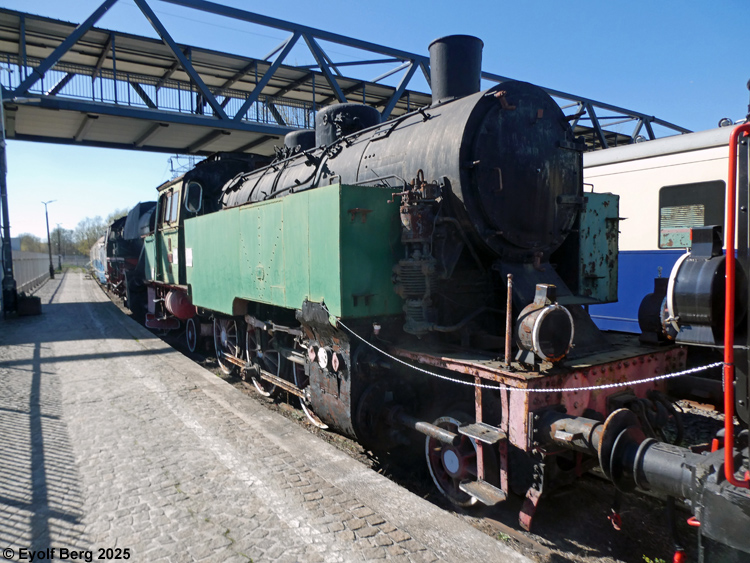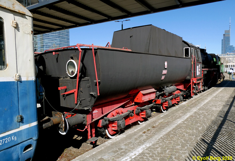 Stasjonsmuseet (Stacja Muzeum) - tidl. Warszawa jernbanemuseum (Muzeum Kolejnictwa w Warszawie) befinner seg 10-15 minutters gange øst for den nåværende sentralstasjonen (Warszawa Centralna), på den gamle sentralstasjonen (Warszawa Głowna). Det er lett å ta seg dit med trikk fra de fleste steder i byen. Museet inneholder et stort antall polskbygde lok av ulike typer. I tillegg finnes det tyskbygde lok som taler sitt eget språk både om tiden før Polen ble samlet igjen i 1918, og om de to verdenskrigene, samt et antall lok som forteller om Polen som del av den sovjetdominerte Warszawa-pakten. Det mest interessante objektet i samlingen er det antakelig eneste gjenværende, tyske pansertoget fra 2. verdenskrig. Det ble overtatt av det polske forsvaret (WP) etter krigen og var i tjeneste til ut på 1970-tallet da det ble klart at den teknologiske utviklingen hadde løpt fra denne våpentypen. Selv om museet er et friluftsmuseum, og det ikke er til å unngå at vær og vind setter tydelige spor, er mye av det utstilte materiellet i svært god stand, og det er tydelig at polakkene satser på å ta vare på også denne delen av sin historie. Et besøk anbefales sterkt. Alt materiell er normalsporet (1435 mm), hvis ikke annet er særlig anmerket nedenfor. Den polske damplokparken bar preg av Polens oppdelte fortid og av de to verdenskrigene. Det fantes derfor et stort antall utenlandske lok, spesielt tyske. Men polsk damplokproduksjon var også av høy kvalitet og frambrakte flere framragende loktyper helt fram til slutten av 1950-tallet. Et damplokomotiv genererer ordinært damp selv fra medbrakt brennstoff og vann, enten ombord i selve loket eller i en spesialbygd vogn, en tender. Brennstoffet vil i de fleste tilfeller være kull, men olje har også vært benyttet. Ved skal ikke ha vært benyttet i Polen, takket være landets enorme innenlandske kullforekomster. Allerede fra den første tiden var det vanlig at damplokene medførte en egen vogn med kull og vanntønner, på engelsk a tender wagon, senere forkortet til tender, et ord som også kom til å bli brukt på norsk. Tenderne utviklet seg i form og størrelse i takt med damplokene, og det oppsto etter hvert egne typebetegnelser også for tendere. I noen tilfeller ble det utviklet tender spesialtilpasset én loktype. For lok som skulle trafikkere lengre strekninger var tenderne helt nødvendige. Lokenes størrelse og vekt gjorde det umulig å lagre kull- og vannforråd på selve loket. Det var likevel begrenset hvor store forråd man kunne medføre, spesielt vann, og på lengre strekninger var etterfylling nødvendig, en ofte tidkrevende prosess. Ofte var det mer effektivt å bytte lok underveis, for så å klargjøre det utskiftede loket til et senere tog. Et tenderlok har normalt en asymmetrisk hjulstilling og beregnet på å kjøres i én retning. Det krever derfor snumuligheter på endestasjonene, vanligvis en svingskive eller et trekantspor. Skal det likevel kjøres baklengs, vil dette normalt måtte skje med redusert hastighet.