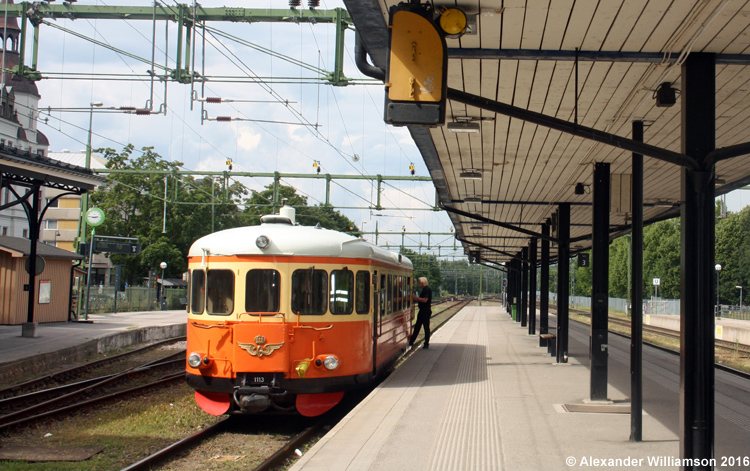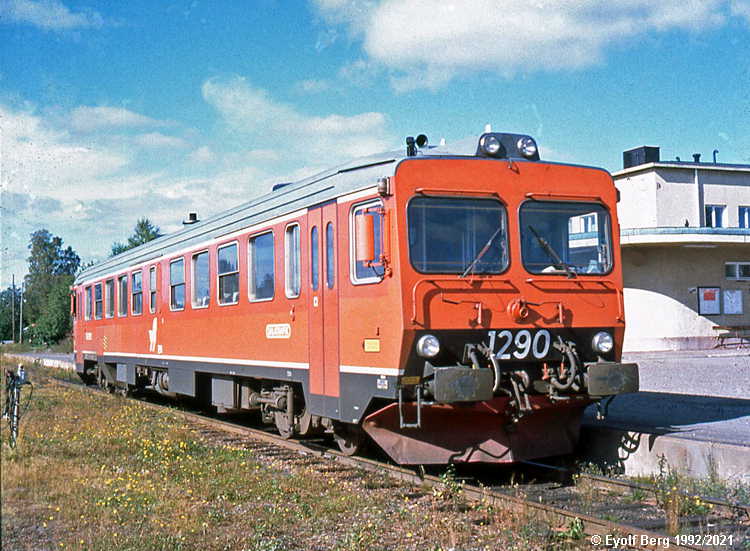 Sverige Motorvogner I motorvogna er lokomotiv og vogn smeltet sammen til en enhet. Motorvogner kan være alt fra én enkeltkjørende vogn til lange tog enten bestående av én eller flere motoriserte enheter samt et antall ikke-motoriserte styre- og mellomvogner - eller tog der motorkraften er fordelt gjennom hele togsettet. Prinsippet om fordelt trekkraft er vanligst på de mest moderne motorvogntogene, mens eldre gjerne hadde umotoriserte styre- og mellomvogner. Styre- og mellomvogner er tatt med på denne siden. Motorvogner benyttes omtrent utelukkende til persontog. I enkelte andre land har man forsøkt å bruke motorvogntog også til enkelte typer godstransport, først og fremst post. Noen eldre motorvogner er bygget om til ulike formål og er også oppført under Anleggs- og vedlikeholdsmateriell. Det finnes både elektriske og dieseldrevne motorvogner. Før dieselmotoren fikk sitt gjennombrudd, fantes det også både bensin- og dampdrevne motorvogner. Sporvidde = normalspor (1435 mm) hvis ikke annet er spesifisert. Dampmotorvognen var et tidlig forsøk på å effektivisere trafikken på svakt trafikkerte sidebaner. De fantes i to grunnleggende design: Det eldste kan nærmest beskrives som et lite damplok med en vogn påhengt omtrent som en semitrailer. Det andre var en personvogn med innebygget dampkjele og en maskinboggi. Felles for dem var at de var lite fleksible og ikke evnet å trekke mer enn maksimalt én tilhenger. Å trekke med seg en godsvogn var utelukket. Dampmotorvogner ble derfor aldri noen stor suksess, og de fleste fikk kort levetid. De fleste typene ble kun bygget i et lite antall eksemplarer, og de ble raskt utkonkurrert av motorvogner med forbrenningsmotor, spesielt da dieselmotoren gjorde sitt inntog.