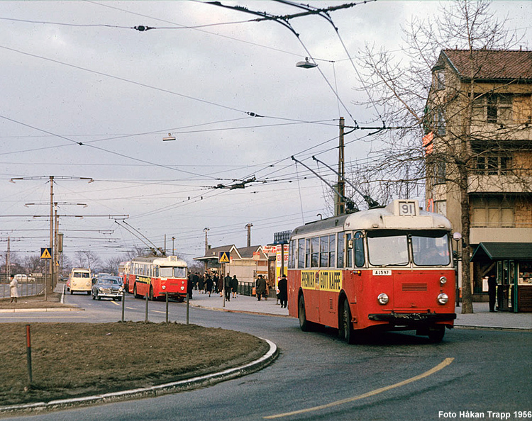 Likestrøm 600 V (system Schiemann, to stenger) Fra 1941 til 1964 hadde Stockholm også skinneløs sporvei. Da nettet var på det største, omfattet det hele 12 linjer, derav én som ble drevet av et privat selskap som også kjørte trolleylastebiler på sin linje. Fram mot 1960 satte nedleggelsene inn, og de siste linjene ble nedlagt i 1964.