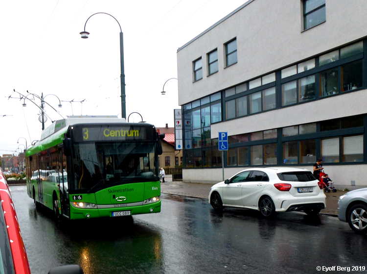 Landskrona Trolleybuss Landskronas skinneløse sporvei ble åpnet i 2003. Den består av én linje, og med sin strekningslengde på bare 3 km er den et av verdens minste trolleybussystemer. Utenom rushtidene klarer to vogner å ta unna trafikken med 12 minutters mellomrom mellom avgangene. I 2013 ble det anskaffet en ladbar 2-systemsvogn med tanke på å utvide eldriften også utenfor trolleybussnettet, med "glide-in" påsporingspunkt på den nåværende endeholdeplassen på Skeppsbron. Forsøket varte i to år, og vognen er deretter blitt benyttet som ordinær trolleybuss. Hva som vil skje når de nåværende vognene er utskiftingsmodne om noen år, er uvisst. Antakelig vil valget stå mellom nedleggelse eller videre utbygging. I sin nåværende form er systemet for lite til å være levedyktig på lengre sikt.