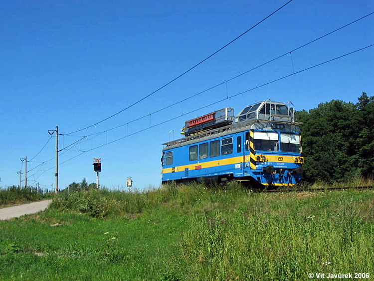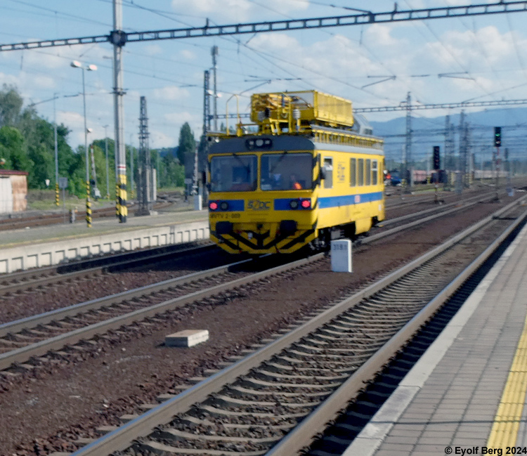 Tsjekkia Anleggs- og vedlikeholdsmateriell Det finnes et utall ulike materielltyper for anlegg og vedlikehold av jernbane- og sporveislinjer, både motorisert og ikke-motorisert. På denne siden er det delt opp i følgende kategorier: Elrevisjonsmateriell brukes til arbeider på kjøreledning og tilknyttede elektriske anlegg. Materiellet er av sikkerhetsgrunner påmontert jordingspantografer eller annet jordingsutstyr som leder strøm direkte fra kontaktledningen til skinnene, dersom ledningen ved et uhell plutselig skulle bli spenningsførende. Det finnes både motorisert og ikke-motorisert revisjonsmateriell. Av de motoriserte enhetene er de fleste spesialbygde, med verkstedsfasiliterer og arbeidsplattform/-kurv. Lastetraktorene - ofte også kalt motortraller - er jernbanens alt-mulig-maskiner. De er utstyrt med lasteplan og vinsj og kan påmonteres ulike typer snøryddingsmateriell (Se også i det kapitlet) eller jordingspantograf (Se kapitlet Elrevisjonsmateriell). De eldste typene var små og kunne bare trekke lette tilhengere. Førerhuset på disse hadde kun plass til føreren, til nød med en hjelpemann, og lastekapasiteten var svært begrenset. De nyere typene har førerhus med god plass til et større mannskap, også egnet som hvile- og spiserom. De har stor lastekapasitet og kan trekke opptil flere fullastede jernbanevogner. Behovet for lok eller skiftetraktorer som trekkraft for anleggs- og vedlikeholdsarbeid faller dermed i stor grad bort.