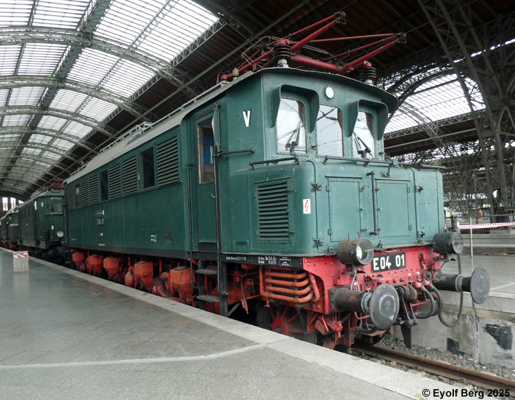 Spor 24 på Leipzig Hauptbahnhof benyttes som museumsspor. De utstilte objektene er utvendig i førsteklasses stand, men ikke kjørbare. Ellokene tilhører DB-Museum Nürnberg, resten Leipzig jernbanemuseum. Damplokomotiver med tender