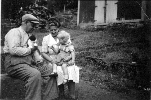 Torunns mor Ingrid med sine foreldre, Julius og Inga Johansen på Slemmestad.