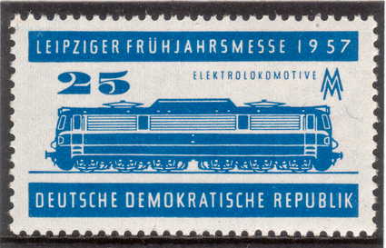 Motiv: 6-akslet ellok, ukjent type. Ingen loktype som likner dette ble bygget i DDR i 1957. |
