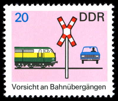 Motiv: Planovergang med diesellok (tilsynelatende av vesttysk type!) |