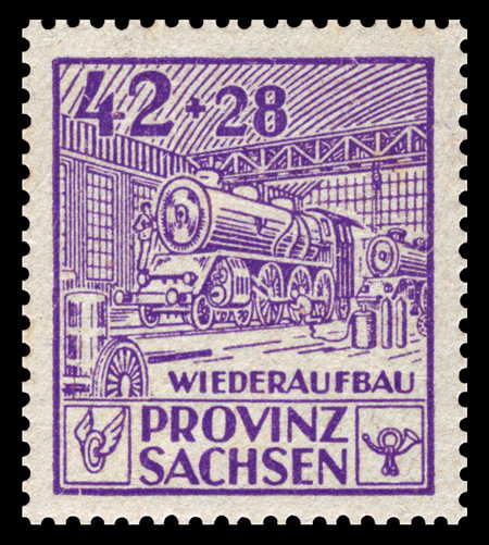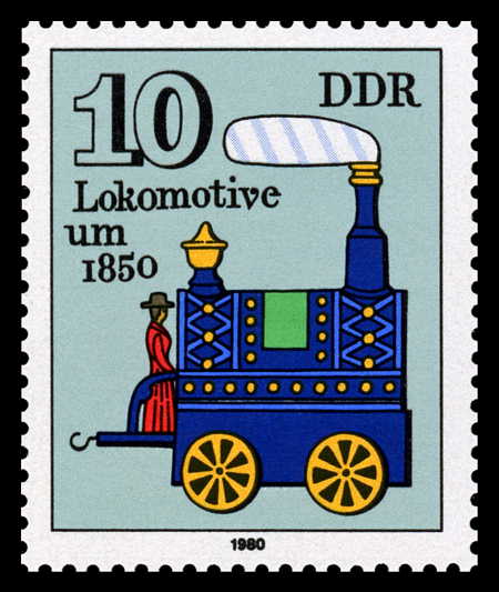 Motiv: Damploket "Saxonia" og lokfører Andreas Schubert fra 1838, og ellok type 250 |