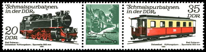 Etikettmotiv: Tog i Mollistraße i Bad Doberan og strekningsskisse |