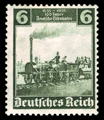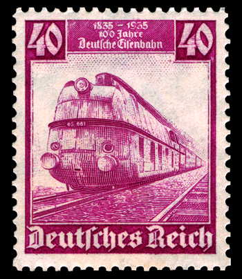 Motiv "Adler fra 1835 og protoyp av DRs diesellok type V180 (type 118) |