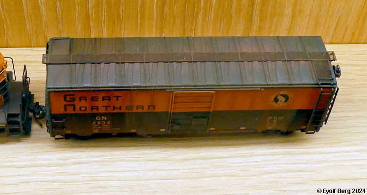 Den andre veggen er viet amerikansk jernbanehistorie - eller rettere sagt noen spesielle sider ved denne. Her er to av høydepunktene i amerikansk damplokutvikling, et par typiske diesellok, men det som virkelig fanger blikket, er to umalte messingmodeller av to ulike typer dampmotorlok. Disse lokene skiller seg fra vanlige lok ved at kraften ikke overføres direkte fra sylindrene via trekkstenger til hjul montert direkte i rammen, men via veivaksler og girdrev til hjul montert i boggier. Lokene er derfor ekstremt fleksible og egner seg til dårlig lag skinnegang. De ble først og fremst utviklet til enkle, flyttbare baner der skinnegangen gjerne ble lagt direkte på bakken, uten noen form for underbygging, og brukt ti å frakte tømmer fra hogstområdene ut til omlastingsplasser der det kunne lastes om på ordinære jernbaner. Dampmotorlokene kunne kjøres i ekstremt lave hastigheter, men spesielt Heisler-typen kunne også oppnå hastigheter so gjorde dem egnet på ordinære sidelinjer. Dampmotorlok ble lite brukt utenfor USA, Canada og Australia. Forhåpentlig vil denne veggen bli utviklet videre og etter hve3rt gi et mer representativt bilde av amerikansk jernbanehistorie.