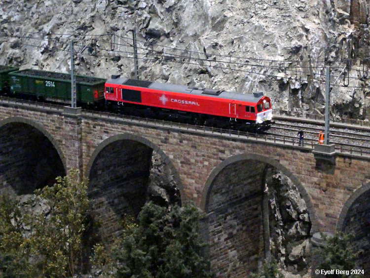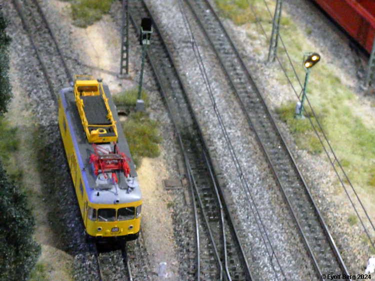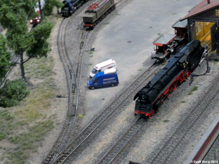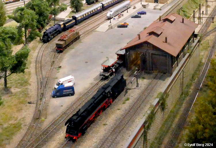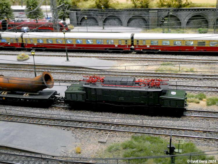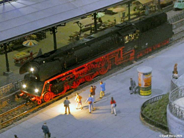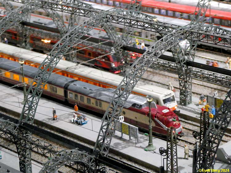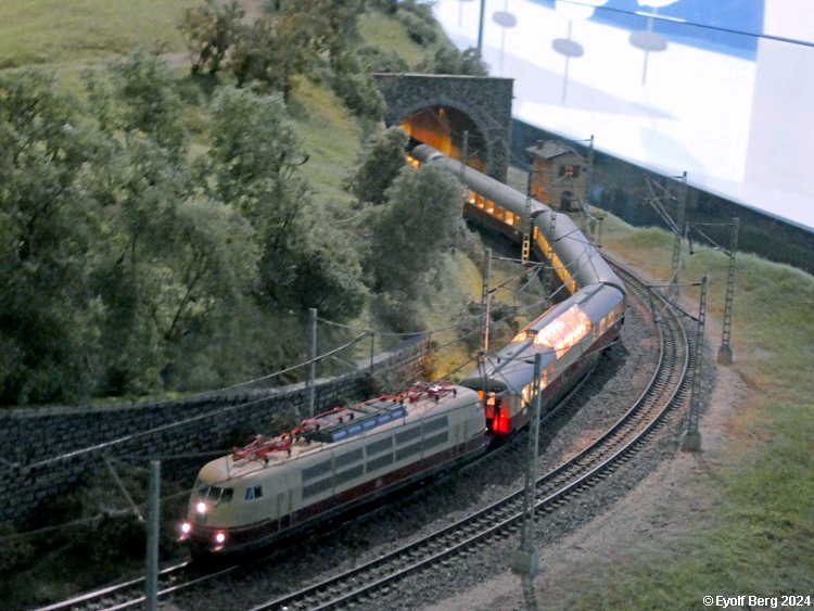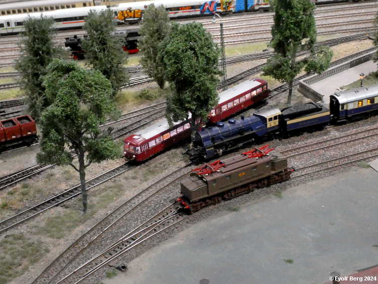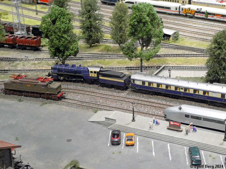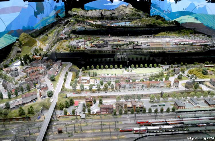 Hovedanlegget fyller, som sagt, mesteparten av den tidligere kinosalen. Du kan gå rundt anlegget et utall ganger og likevel oppdage nye detaljer hver gang. Landskapet kan best beskrives som circumalpint, en blanding av Sør-Tyskland og Nord-Italia, med noen innslag av Østerrike og Sveits. Broer, bymiljøer og stasjoner er stort sett hentet fra virkeligheten. Det er f.eks. ikke vanskelig å gjenkjenne sentralstasjonen i Milano i den store hovedstasjonen på anlegget - bortsett fra fasaden. Den er umiskjennelig Berlin Hauptbahnhof! Det rullend materiellet er like circumalpint som landskapet. Her kjøres tysk og italiensk, 15 kV vekselstrømsmateriell og 3 kV likestrømsmateriell om hverandre, med innslag av både Østerrike og Sveits (Nei, jeg så ikke noe fransk) - ja, endog en liten dæsj DDR! Og ulike tidsepoker kjøres likeledes om hverandre i en herlig blanding, med andre ord ikke noe for sarte feinschmeckersjeler. Men hva så? Det hele styres fra et kontrollrom som sies å være like avansert som fjernstyringssentralen på en moderne høyhastighetsjernbane.
