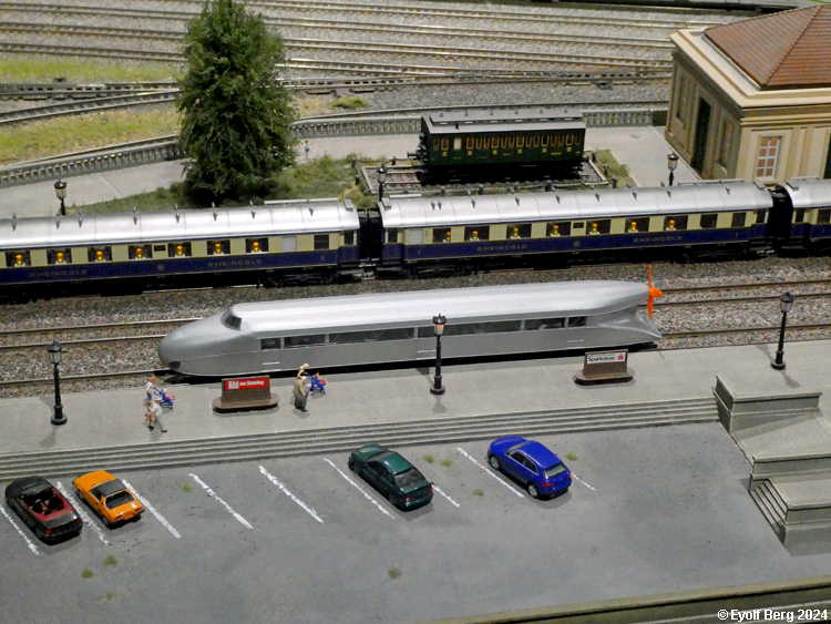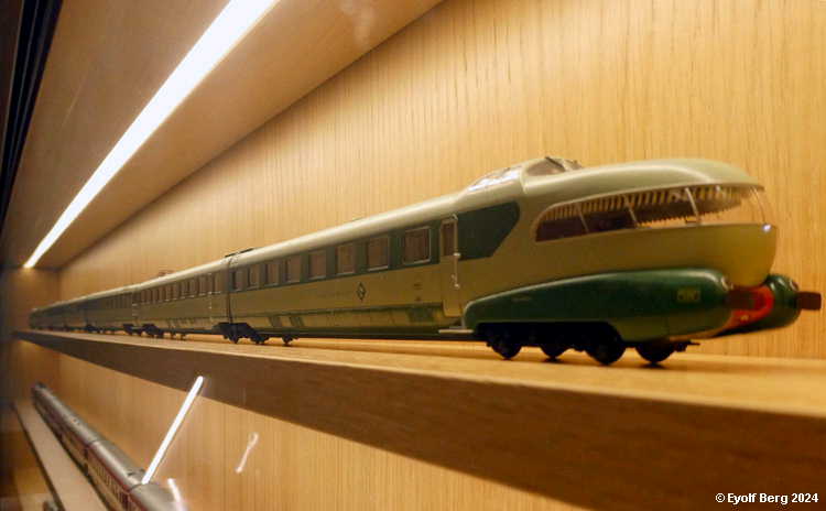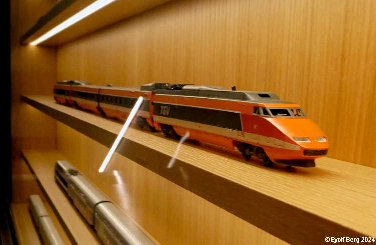 Den ene veggen i det tidligere maskinrommet brukes til en utstilling av høyhastighetstog. Dessverre virker utvalget veldig tilfeldig og lite representativt. Bl.a. savnes det opprinnelige Shinkansen-toget. Tidligere versjoner av tyske ICE burde også vært representert, og spanske AVE, samt de nyere italienske høyhastighetstypene, for bare å nevne noen. Det er å håpe at denne veggen utvikles videre, for idéen bak den er god - svært god.