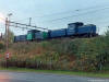 NSB Di2.826 fremst i en lang rekke utrangert materiell med ytterlligere en Di2, flere Skd220c og en finkevogn type FVde.