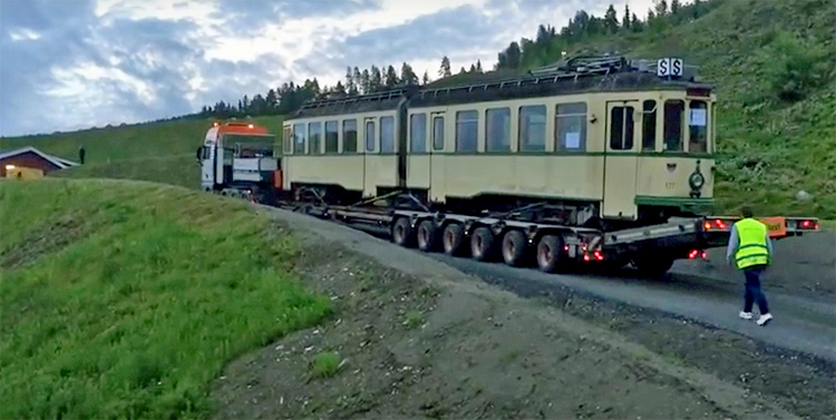 Trikk til Valdres? Et heller sært tilfelle ... Valdres er omtrent det siste stedet man tenker på når det er tale om sporvei. Ikke desto mindre dukket det i 2017 opp en veteransporvogn fra Duisburg i Tyskland nettopp i Valdres. Den var innkjøpt av en tysk innflytter som har bygget seg noe som mest minner om et sørtysk slott, og som skulle bruke trikken til et kurssenter. Og han nøyde seg ikke med én. Senere samme år kom det nok en trikk fra Duisburg, denne gangen en helt moderne vogn, en første prototyp til den typen som går i bl.a. Bergen, Odense og London. Denne kom imidlertid aldri lengre enn til Hensmoen på Ringerike, der den ble stående ute, utsatt for vind og vær, nedtagging og annet hærverk. Samtidig mistet tydeligvis kjøperen interessen for å videreføre prosjektet i Valdres, og det gikk som det måtte gå: Våren 2022 ble vognen fjernet og sendt til opphogging. Veteranspovognen, f.ø. verdens første leddtrikk, skal derimot stå trygt - enn så lenge - innendørs på Lo i Valdres.