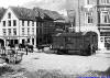 Bryggen, Bergen, ca. 1920. Legg merke til at vognen trekkes av hester. Gatelegemet på Bryggen var for svakt til å bære vekten av damplok. |