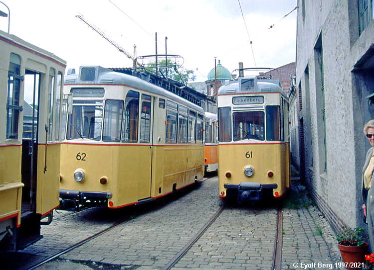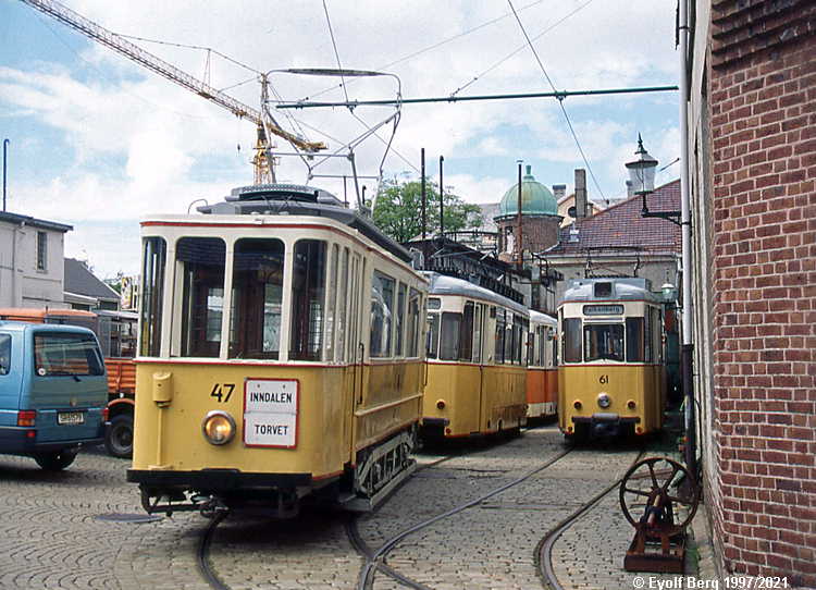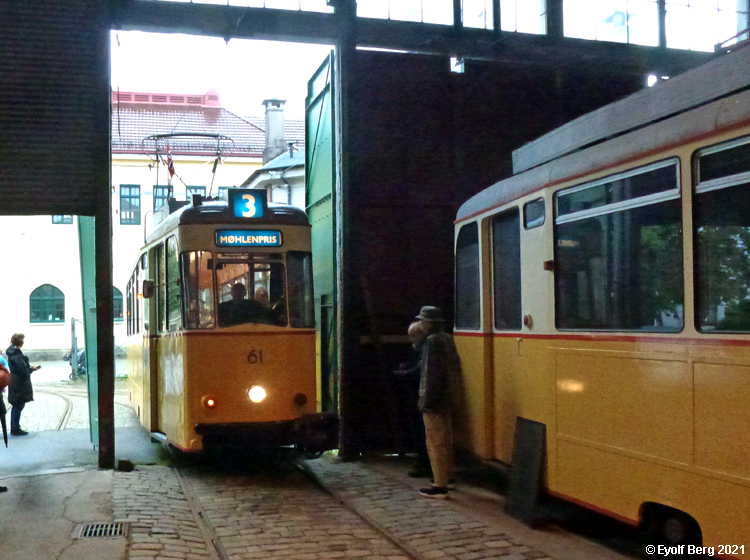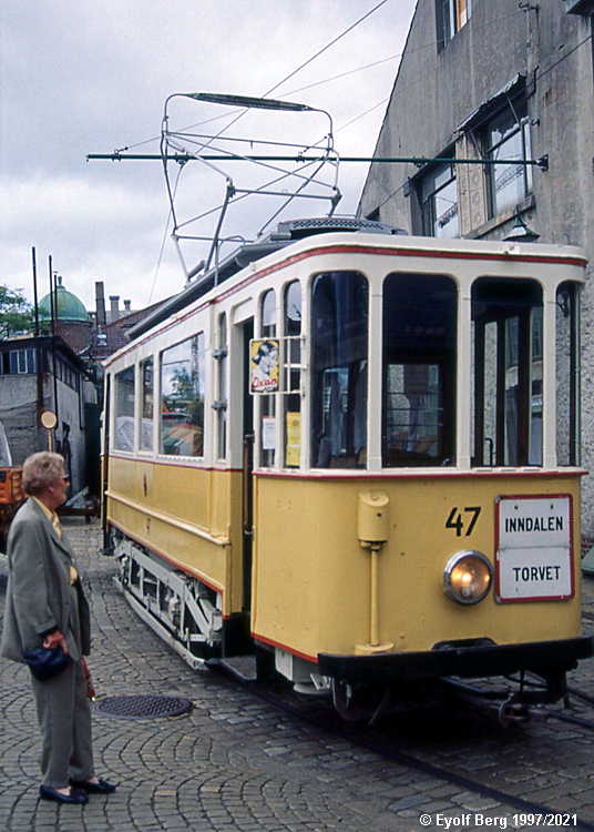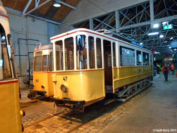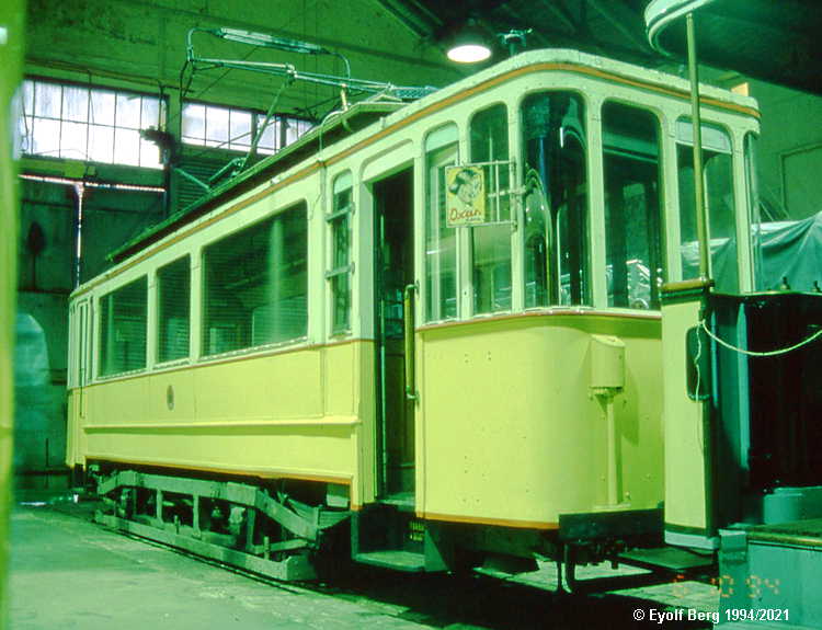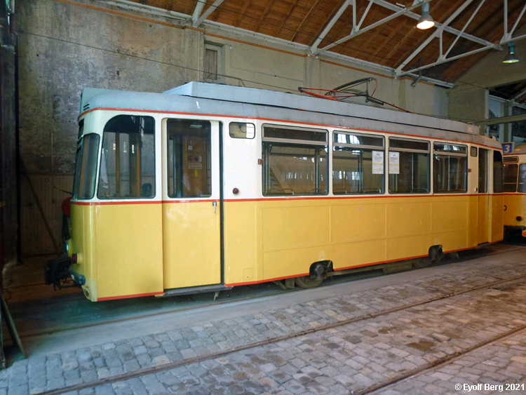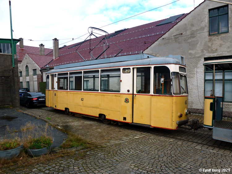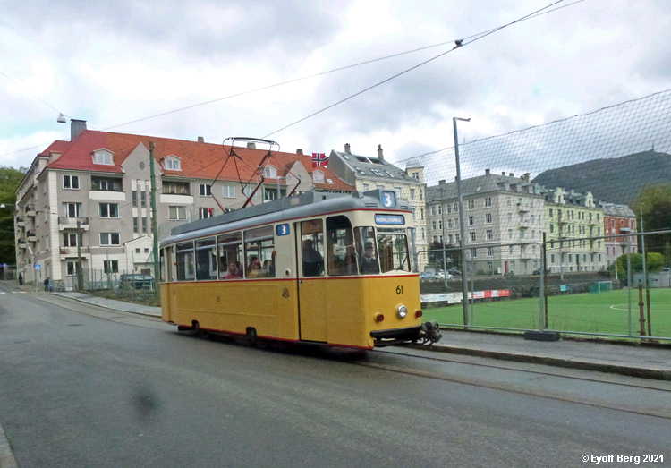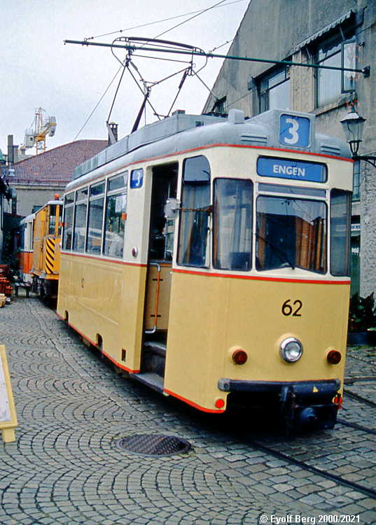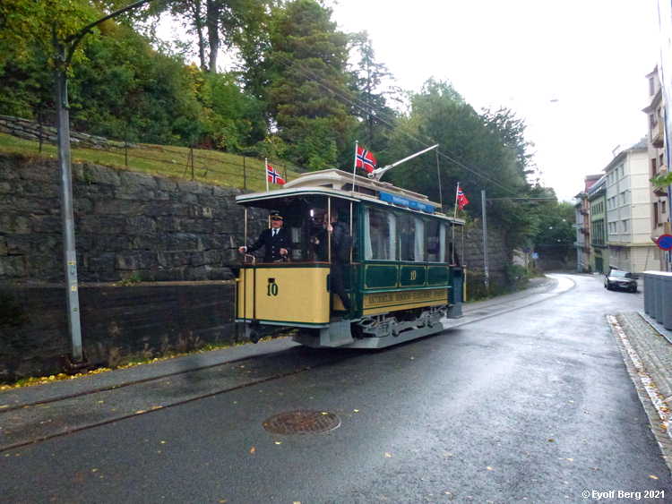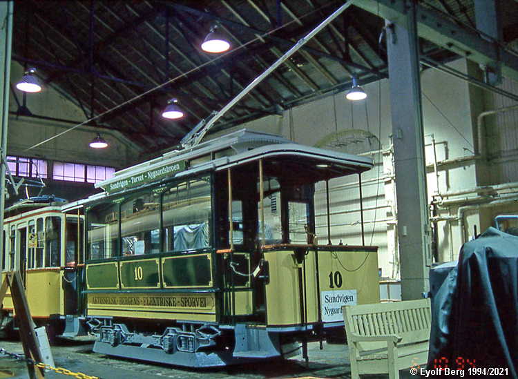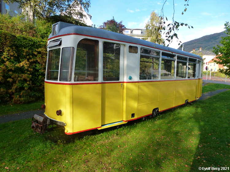 Sporvognsdriften i Bergen ble nedlagt 31. desember 1965, og med ett unntak ble samtlige gjenværende sporvogner hogget opp eller senket på dypt vann i sjøen utenfor Bergen. Kun én av Bergens Sporveis vogner er bevart, nr. 10 fra åpningsåret 1897. I senere år er det også gjenfunnet én vognkasse av samme årgang. Den står på museet, men det vites ikke hva som kommer til å skje videre med den. Da tanken om et teknisk museum og en museumssporvei i Bergen dukket opp på 1980-tallet, måtte man derfor anskaffe vogner fra andre steder for å kunne dokumentere denne delen av Bergens historie. Det ble anskaffet en vogn fra Oslo Sporveier, tilnærmet lik en som gikk i Bergen på 1940-tallet. Dessuten overtok man en plogtrikk fra Oslo. I 1993 fikk man tre motorvogner med tilhengere fra Berlin. Disse er såkalte REKO-vogner (rekonstruerte) fra 1969, prinsipielt ombygde og moderniserte vogner fra før 2. verdenskrig. I praksis var vognene helt nye. Den ene tilhengeren er pusset opp og oppstilt som statisk minnesmerke på den gamle vendesløyfen for sporveiens linje 1 på Minde. Museumssporveien, Bergens elektriske sporvei (BES) følger den gamle linje 3 (nedlagt i 1950, samme år som jeg ble født) fra Møhlenpris over Nygårdshøyden til Engen. Prosjektet har vært langt mer tidkrevende enn man så for seg da det begynte. I 2021 ble linjen åpnet for drift til Muséplassen (halvveis). Fortsatt mangler det ca. 50 m skinnegang og noen hundre meter kontaktledning, men man håper at hele strekningen skal kunne være i drift i løpet av 2022. Linjen er enkeltsporet og (foreløpig) uten krysningsmulighet, så kun én vogn kan være i drift om gangen. Det er heller ikke mulig å gå rundt på Engen, så tilhengerdrift vil heller ikke være mulig - med mindre tilhengerne utstyres med kjørekontroller. De tyske vognene kan imidlertid multippelstyres, så på store trafikkdager vil det være teknisk mulig å kjøre 3-vognstog med to motorvogner med en tilhenger mellom.