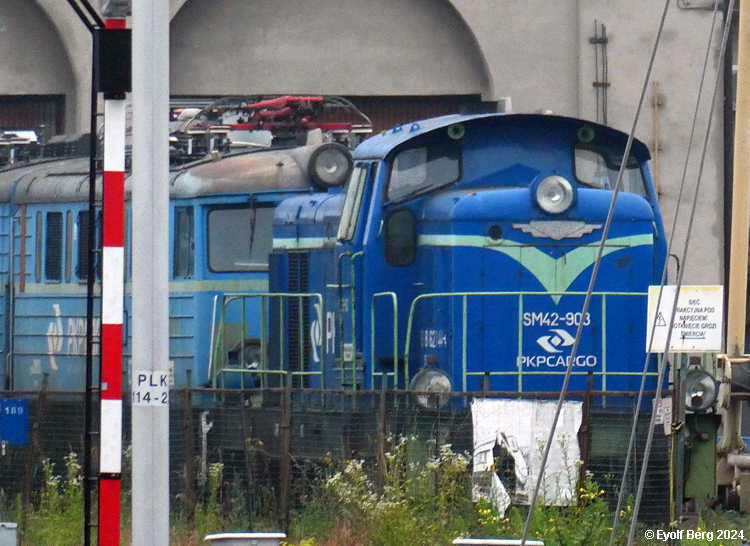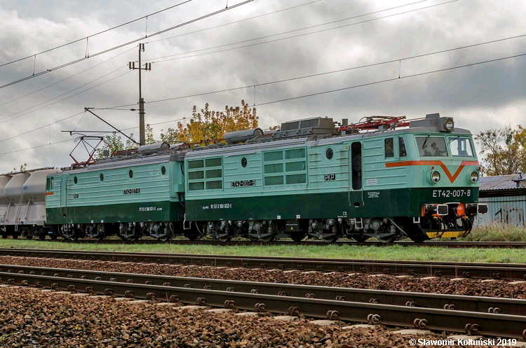 Polen Lokomotiver Polske lokomotivbetegnelser: Den klassiske typebetegnelsen består av to bokstaver med et påfølgende tosifret nummer. Første bokstav er enten E for elektriske lok (polsk: Elektryczna) eller S for diesellok (polsk: Spalinowa). Andre bokstav er enten P for persontogslok (polsk: Pasażerska), T for godstogslok (polsk: Towarowa), U for universallok (polsk: Uniwersalna) eller M for skiftelok (polsk: Manewrowa). Dersom det samme tosifrede nummeret forekommer med ulik andre bokstav, betyr det at det teknologisk sett er snakk om samme loktype, men med ulik utveksling til ulik bruk, f.eks. EP07 (hurtige persontog, ekspresstog) og EU07 (langsommere, kort- og mellomdistansepersontog eller lettere godstog). Det tosifrede nummeret har ulik funksjon på el- og diesellok. Ellok med typenummer 01-14 er 4-akslede likestrømslok. 15-19 er 4-akslede vekselstrømslok. For 6-akslede lok er nummerseriene hhv. 20-34 og 35-39, mens 40-49 betegner andre loktyper, bl.a. flerseksjonslok. Diesellok med typenummer 01-09 har mekanisk transmisjon og er uten multippelstyring. 10-14 angir dieselmekaniske lok med multippelstyring. For lok med hydraulisk transmisjon er de tilsvarende nummerseriene 15-24 og 25-29, mens lok med elektrisk transmisjon har hhv. 30-39 og 40-49. Polen har også innført EDB-numrering på lokene, med firesifrede typenumre der det første sifferet angir traksjonstype og bruksområde, og tresifrede løpenumre. Det gamle systemet brukes fortsatt parallelt, og alle lok er merket etter begge systemene. Med unntak av de aller nyeste lok typene er det tilsynelatrende ingen rekkefølgesammenheng mellom de to systemene. Det kan også skjule seg flere typer etter det gamle systemet bak ett og samme EVN-typenummer, samt at undertyper at det gamle systemet kan ha ulike EVN-typenumre. Selv om samlingen erforskt organisert etter den enkeelte typens første produksjonsår, kan dette medføre at samme typenummer opptrer ukronologisk flere steder. NB! Lok merket som museumslok, er vanligvis representert med flere bilder og utfyllende info under angjeldende museum. Her er de kun tatt med for å synliggjøre typene. Alle lok er normalsporet (1435 mm sporvidde) med mindre annet er spesifisert. Stasjonsbetegnelser: Głowny/Głowna = sentralstasjon. Wschód = øst.