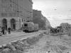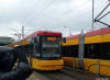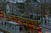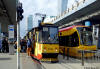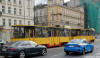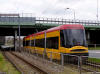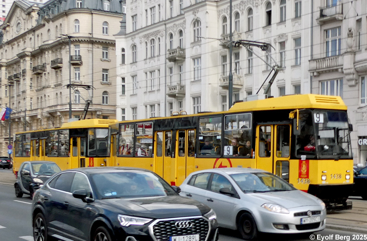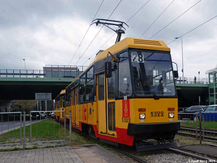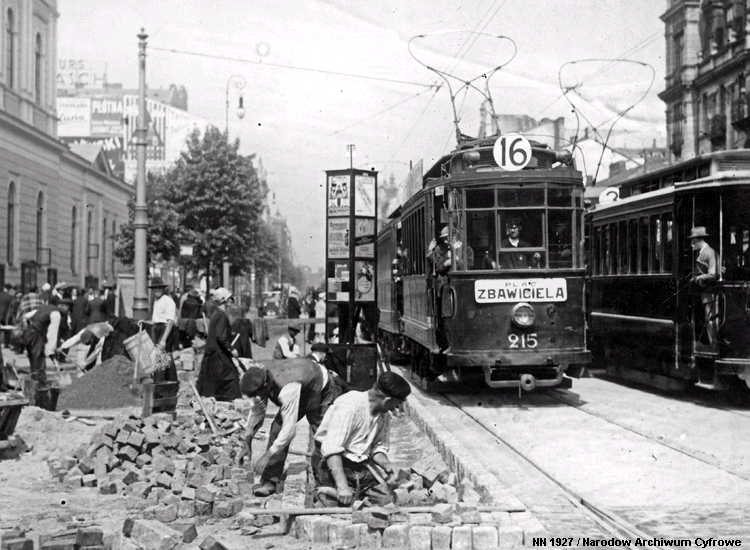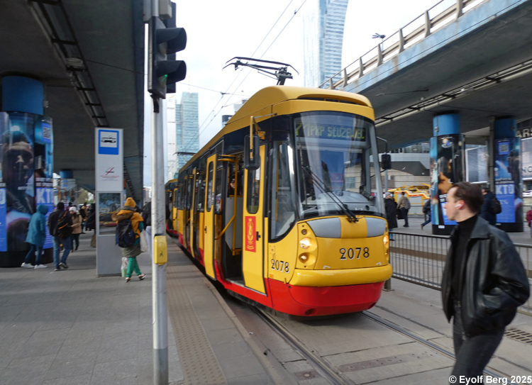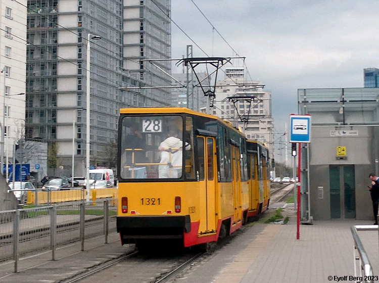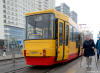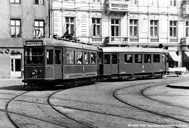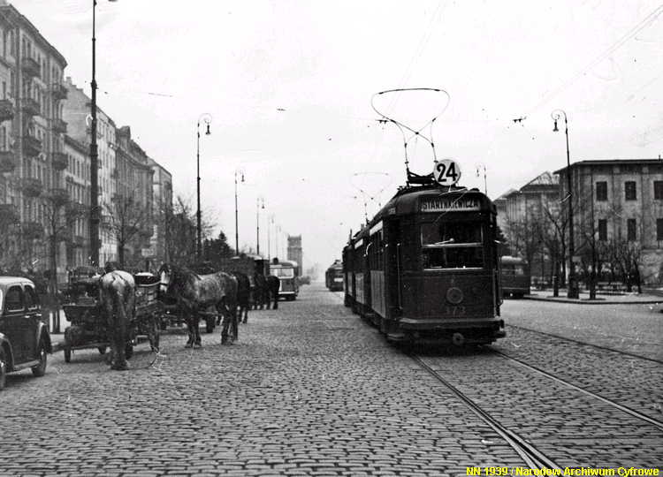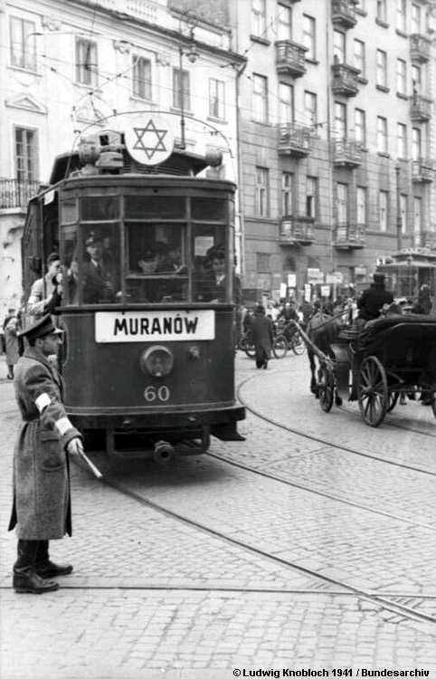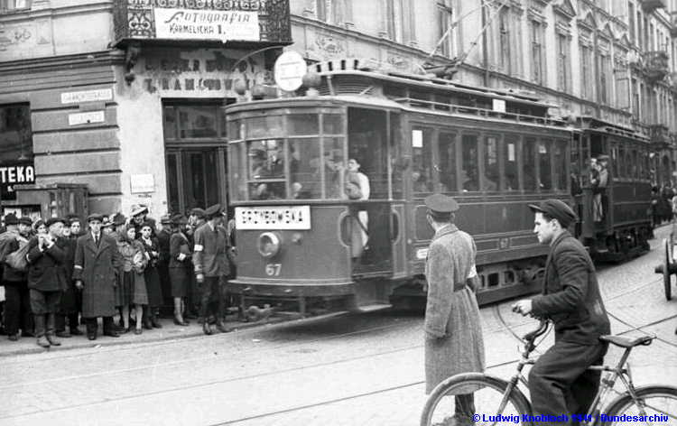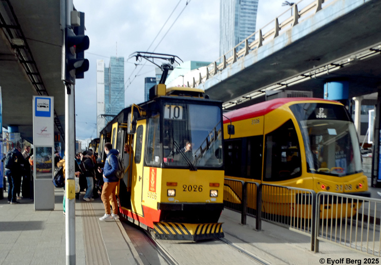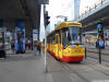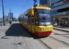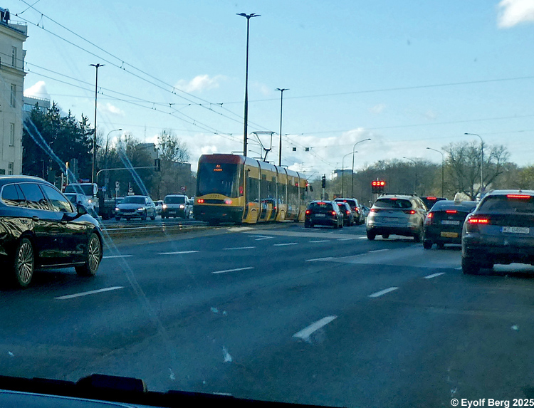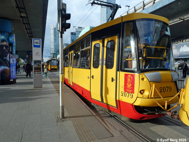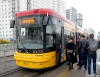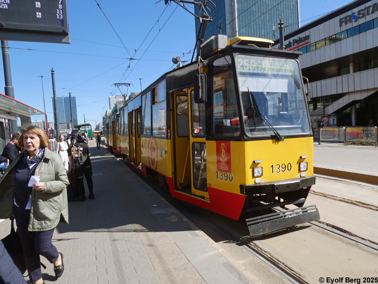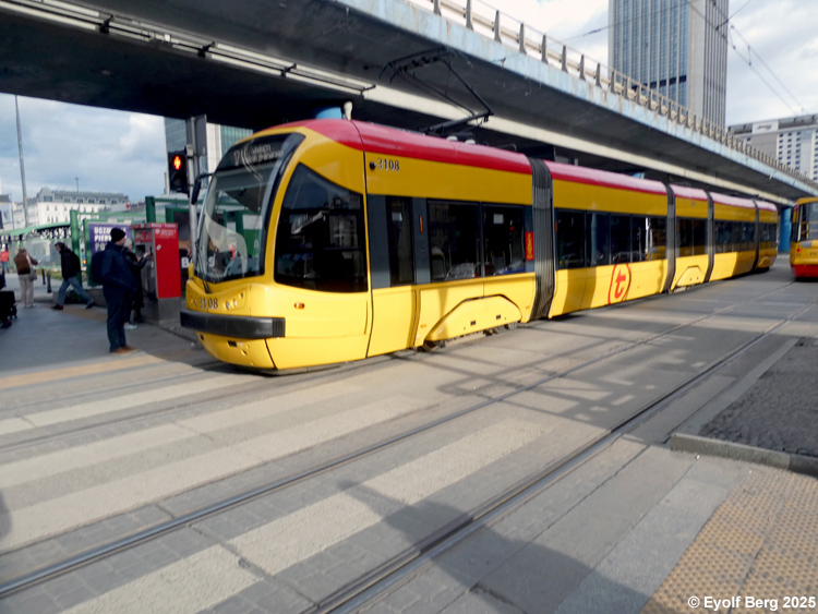 Warszawa Sporvei, t-bane og trolleybuss Likestrøm, 600 V (kontaktledning) Warszawas sporveishistorie begynte i 1866 da det ble åpnet en hestedrevet bane for person- og godstransport. Sporvidden var 1524 mm (russisk bredspor) som følge av at byen den gangen tilhørte det russiske imperiet. De russiske myndighetene vanskeliggjorde byggingen av sporveien ved bl.a. å forby byggingen av en bro over Wisła. Dette ble omgått ved at man benyttet en jernbanelinje for å krysse elven. Fram mot århundreskiftet vokste sporveisnettet kraftig, og i 1908 ble driften elektrifisert. Da Polen ble selvstendig etter første verdenskrig, skjøt utbyggingen av sporveisnettet fart etter femten års stagnasjon. Warszawa ble fullstendig rasert av den tyske okkupasjonsmakten under andre verdenskrig og måtte gjenoppbygges fra grunnen av etter krigen. Det gjaldt også sporveien, og i forbindelse med gjenoppbyggingen benyttet man samtidig anledningen til å gå over fra russisk bredspor til normalspor (1435 mm). Denne ombyggingen var fullført i 1950. Fra 1960 og utover stagnerte sporveisutbyggingen på ny, og enkelte linjer ble også nedlagt, denne gangen for å spare kull (Se nedenfor!). Fra 2005 har sporveien i Warszawa opplevd en ny blomstringsperiode med store investeringer i infrastruktur og rullende materiell. Flere nye linjer er blitt åpnet, og ytterligere utvidelser er under planlegging. Sammen med t-banen vil sporveien også i framtiden utgjøre ryggraden i byens kollektivtrafikk. Under den tyske invasjonen i 1939 ble sporveisnettet i Warszawa påført store skader. Mange av disse skadene ble ikke reparert før etter krigen. Da trafikken på den fremdeles kjørbare delen av nettet ble gjenopptatt, overførte de tyske okkupantene både infrastruktur og vognpark til et nytt, tyskeid firma, SVW. Etter opprettelsen av Warszawaghettoen i 1940 ble det etablert egne "jødetrikker" for å transportere ghettobeboerne mellom ghettoen og de tyskeide tvangsarbeidsplassene, bredrifter som produserte forsyninger for Wehrmacht. Disse trikkene var merket med en blå Davidsstjerne på hvit bakgrunn. Det var strengt forbudt for ikke-jøder å reise med disse vognene, og jøder hadde kun lov til å benytte disse vognene. Andre trikker som kjørte gjennom ghettoen, stoppet ikke der, og det var dødsstraff for ghettobeboere som prøvde å komme seg på dem. Etter hvert ble gaten sporveien gikk i, avsondret fra selve ghettoen med murer slik at den delte ghettoen i to deler. I tillegg opprettet okkupasjonsmakten en "Deutsche Linie". Denne var merket med en stor rød ring på hvit bakgrunn. Det var strengt forbudt og forbundet med streng straff for polakker å benytte disse vognene. Etter krigen var kun få av Warszawas sporvogner i kjørbar stand. Derimot fikk man tilbakeført et stort antall vogner av type K, som okkupasjonsmakten hadde beslaglagt rett fra fabrikken og sendt til den normalsporete sporveien i Berlin. Dette, sammen med de to kjensgjerningene at det meste av sporveiens infrastruktur likevel måtte bygges opp igjen fra grunnen av, og at det i fortsettelsen ville være både enklere og billigere å anskaffe normalsporet materiell enn bredsporet, førte til at bredsporets dager var talte. Det gikk bare ca. 4½ år innen den siste bredsporvognen kunne si takk for seg - dvs. at det gjorde de ikke. De ble omsporet og kjørte videre på den nye sporvidden.