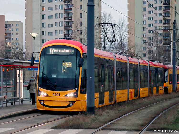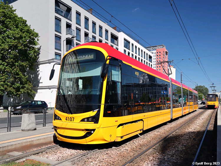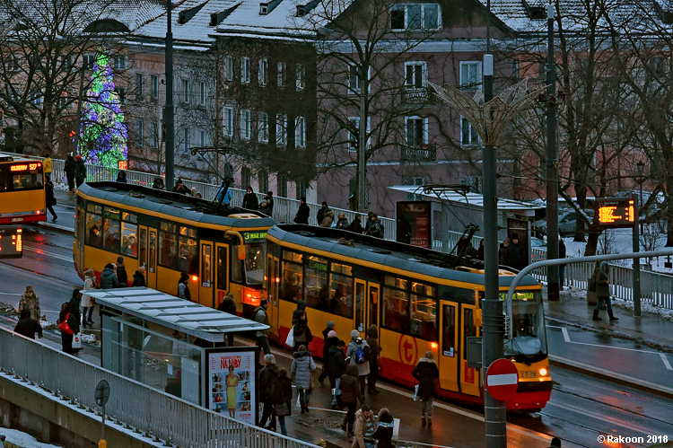 sporveiens infrastruktur måtte så å si bygges opp igjen fra grunnen av etter 2. verdenskrig. Samtidig var det en skrikende mangel på rullende materiell, og bredsporet sporvognsmateriell lot seg ikke uten videre skaffe. Warszawa benyttet derfor anledningen til å gå over fra russisk bredspor til normalspor. Det medførte at man kunne få tilført sporvogner som nødhjelp fra andre byer, bl.a. Breslau som nå var blitt polsk og het Wrocław. Samtidig var det enklere å omspore bredsporet materiell til normalspor enn omvendt, og etter hvert ble byens egne, overlevende trikker istandsatt og satt i trafikk på den nye sporvidden. En god hjelp var det også da man fikk tilbake de mange trikkene av type K, som okkupasjonsmakten hadde beslaglagt direkte fra fabrikk og sendt til den normalsporete sporveien i Berlin. Dette medførte at man klarte seg inntil den økonomiske og industrielle situasjonen i Polen og Warszawa igjen tillot produksjon og innkjøp av nye vogner fra 1949 og utover.