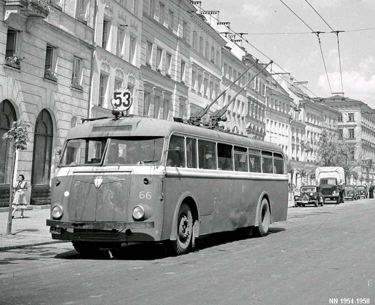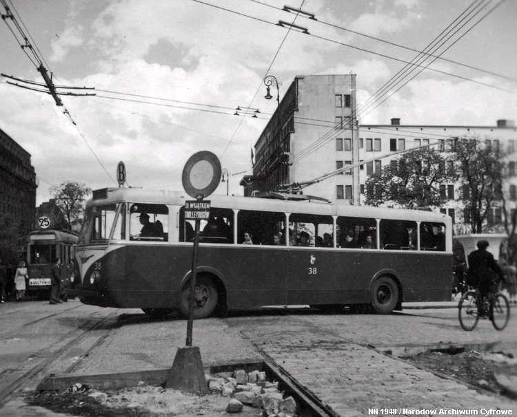 Likestrøm, 600 V (system Schiemann, 2 stenger) Warszawa hadde skinneløs sporvei fra 1946 til 1973 og fra 1983 til 1995. Det første nettet besto på det meste av seks linjer pluss fire rushtidsforsterkningslinjer. Årsaken til at det ble nedlagt, var at Polen fikk kjøpt billig olje fra Sovjetunionen samtidig som landet tjente vestlig valuta på å eksportere kull til land utenfor COMECON-systemet. Regjeringen ønsket derfor at landets kullproduksjon skulle gå til eksport, ikke til innenlandsk elektrisitetsproduksjon. I 1983 ble det igjen startet trolleybussdrift i byen, og planen var å bygge ut flere linjer. Økonomiske problemer under og etter den militære unntakstilstanden på slutten av kommunistregimet medførte imidlertid at planene måtte stilles i bero, og etter bare 12 år ble driften igjen innstilt. Om den miljøvennlige, skinneløse sporveien får en ny sjanse når de økonomiske forholdene bedrer seg igjen, vil tiden vise.