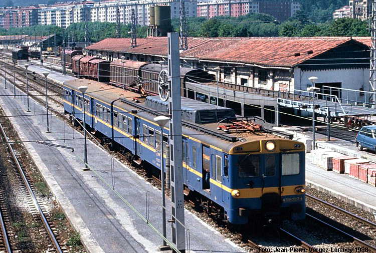 Likestrøm, 1,5 kV (kontaktledning) Da elektrifiseringen for alvor satte inn, først og fremst i Nord-Spania, i mellomkrigstiden, valgte man å satse på likestrøm etter fransk forbilde, med 1,5 volt. Denne elektrifiseringen skjedde i stor grad parallelt for både bredspornettet og det store, nordspanske meterspornettet. Også de mindre meterspornettene rundt om i landet valgte samme system for eventuelt å kunne samordne materiellinnkjøp.