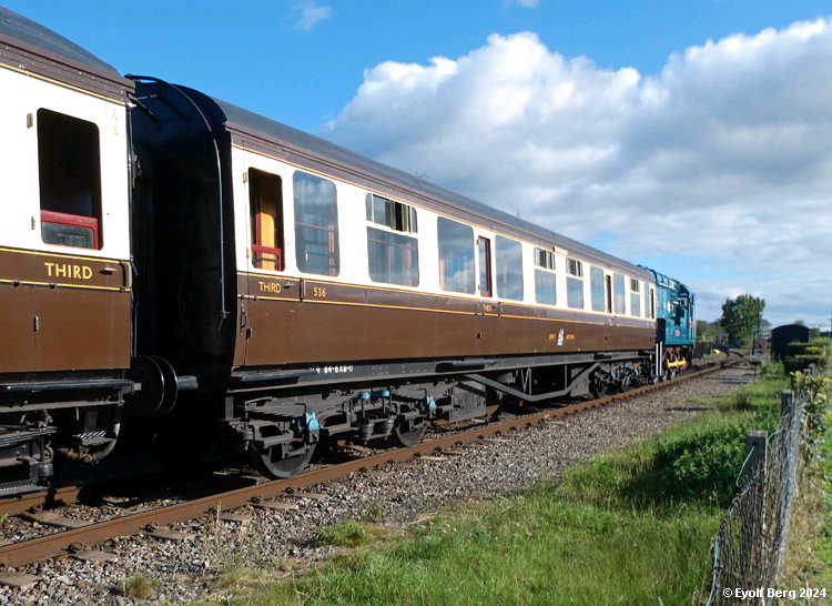 Didcot Railway Centre holder til på det tidligere lokstallområdet i Didcot i Oxfordshire i den sørvestlige delen av England. Didcot var et sentralt lokdepot for GWR allerede i bredsportiden, og museets fokus er nesten utelukkende materiell fra GWR og BRs Western Region, samt enkelte lokalbaner tilknyttet disse. Samlingen av rullende materiell er imponerende, og museet byr i tillegg på en rekke aktiviteter for barn. Det er derfor et sted som er meget godt egnet for hele familien. Et besøk anbefales sterkt. Det er gratis adgang, men besøkende oppfordres til å gi pengegaver, gjerne registrere seg som faste givere, for å sikre videre drift. Museet har en egen strekning der det kan kjøres materiell som ikke er godkjent for bruk på det nasjonale jernbanenettet. Det skal også finnes en kort strekning med GWRs opprinnelige bredspor, 2140 mm, men denne klarte jeg ikke å finne under mitt besøk 28.09.2024. Heller ikke så jeg noe til museets angivelige replikaer av bredsporet materiell. Disse skal være bygget etter originale tegninger.