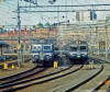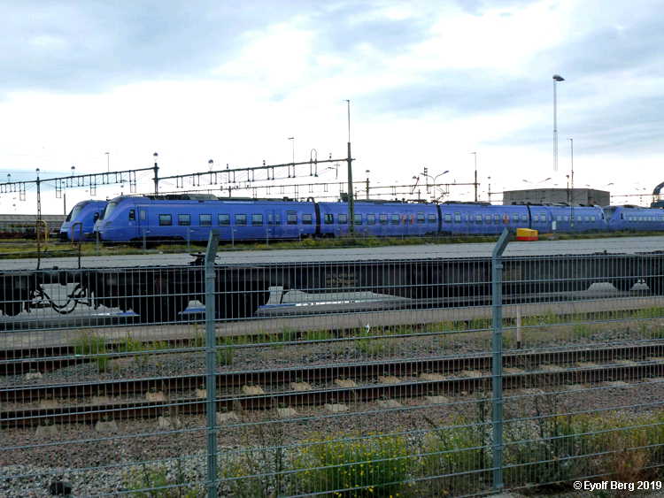 BT (innleid fra SJ) type X9 i overgangsdesign (t.v.) og BT-design