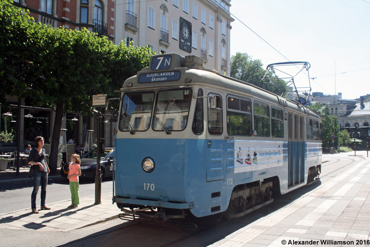 Stockholm Sporvei, t-bane og trolleybuss Normalspor (1435 mm) Stockholm var en gang Skandinavias største sporveisby. Den første - hestedrevne - sporveislinjen kom allerede i 1877. I 1887 ble det også startet dampdrevet sporveisdrift i byen, og i 1901 rullet den første elektriske sporvognen gjennom gatene, og kort tid etter forsvant både hest og damp. I 1933 ble det åpnet en sporveistunnel under sentrum, mellom Slussen og Skanstull, som første ledd i det som skulle bli Stockholms t-bane. Etter 2. verdenskrig begynte man å legge ned sporveislinjene i Stockholm, og med unntak av to linjer i utkanten av byen, Nockebybanan og Lidingöbanan som begge kjører på egne trasséer, forsvant sporvognen helt fra byen ved overgangen til høyrekjøring i 1967. På 1980-tallet begynte det igjen å dukke opp planer om sporvei i Stockholm, og som et første skritt ble det åpnet en museumslinje, Djurgårdslinjen, i 1991. Denne ble etter hvert forlenget, og i 2001 ble det startet ordinær sporveisdrift på det som heter Spårväg City. Året før hadde man også åpent Tverrbanan som har forbindelse med Nockebybanan. I 2013 ble det åpnet en tunnel som knytter de tre delene av Stockholms sporveisnett sammen til et hele. Det finnes også planer om ytterligere utbygging, både i sentrum og i utkantene av byen.