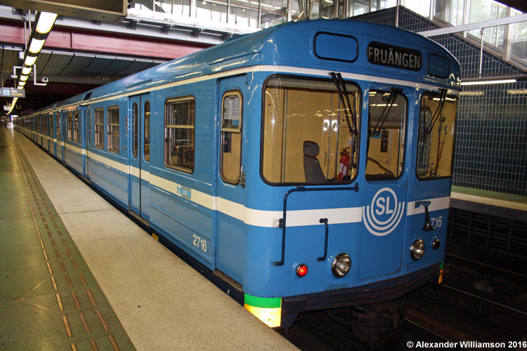 Likestrøm 650 V (strømskinne) T-banenettet i Stockholm er uten sammenlikning Skandinavias største. Utbyggingen begynte allerede i 1933 med sporveistunnelen mellom Slussen og Skantull, og den første egentlige t-banelinjen ble åpnet i 1950. Utbyggingen fortsatte utover gjennom hele siste halvdel av 1900-tallet, og i 1994 ble stasjon nr. 100 åpnet. T-banenettet har en utstrekning på hele 11 mil og er delt opp i tre helt atskilte hovedlinjer med flere grenlinjer i utkantene av byen. Det arbeides fortsatt med planer om videre utbygging av systemet.