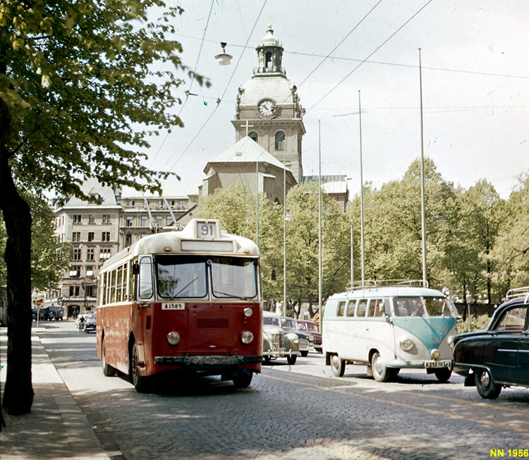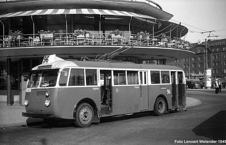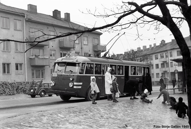 Likestrøm 600 V (system Schiemann, to stenger) Fra 1941 til 1964 hadde Stockholm også skinneløs sporvei. Da nettet var på det største, omfattet det hele 12 linjer, derav én som ble drevet av et privat selskap som også kjørte trolleylastebiler på sin linje. Fram mot 1960 satte nedleggelsene inn, og de siste linjene ble nedlagt i 1964.