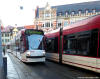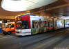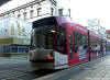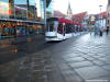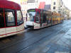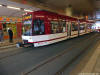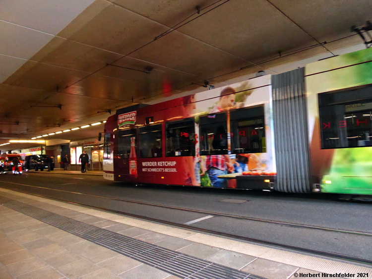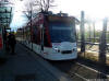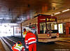 Rieth, 01.05.1976, vognens jomfrutur. Komfortmessig innebar disse vognene et stort framskritt, men de var langt tyngre enn sine 2-akslete forgjengere, og skinnegangen i indre by var ikke dimensjonert for dem, noe som medførte store skader i gatelegemene. |