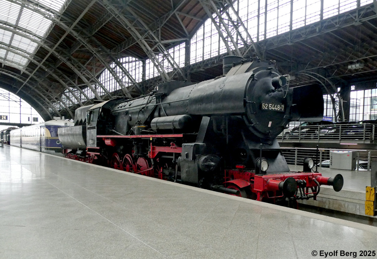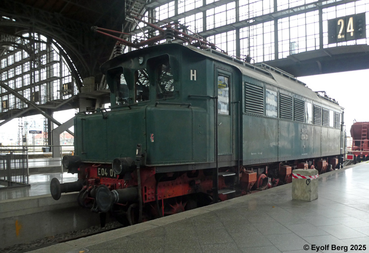 Spor 24 på Leipzig Hauptbahnhof benyttes som museumsspor. De utstilte objektene er utvendig i førsteklasses stand, men ikke kjørbare. Ellokene tilhører DB-Museum Nürnberg, resten Leipzig jernbanemuseum. Damplokomotiver med tender