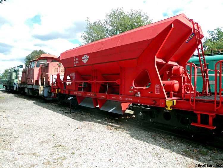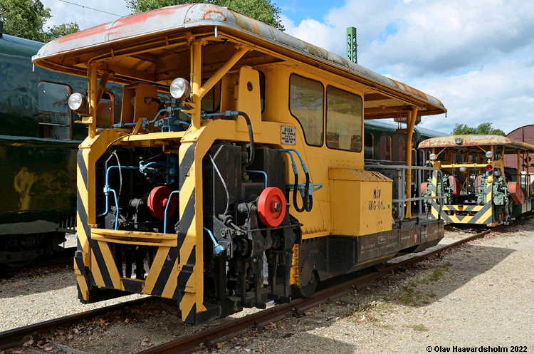 Enheter som er merket "Museumsvogn" eller "Museumsenhet" vil vanligvis være representert med flere bilder og utfyllende opplysninger under vedkommende museum. Her er de kun tatt med for å vise typen. Materiell for anlegg og vedlikehold av skinnegang og banelegeme Til å anlegge og vedlikeholde jernbanens fysiske infrastruktur (skinnegang og banelegeme, det underlaget som skinnegangen ligger på, samt tunneler og broer) er det utviklet en rekke spesialmaskiner for utlegging og utskifting av pukkmasse, for montering og utskifting av skinner, både enkeltskinner og ferdige sporseksjoner, inspeksjon av skinnegang mv.