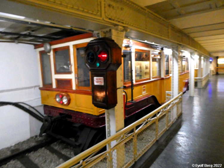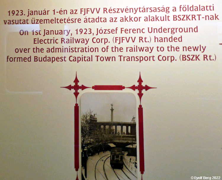 Budapest T-banemuséet på Deák Ferenc tér T-banen i Budapest er verdens nest eldste. Kun Londons er eldre. Den eldste linjen, linje M1, ble åpnet i 1896, til 1000-årsjubileet for det som regnes som Ungarns grunnleggelse. Denne linjen har et vesentlig smalere profil enn de nyere linjene, noe som medfører at materiell fra de andre linjene ikke kan trafikkere linje M1 - eller omvendt. I tilknytning til informasjonssenteret på den store t-banestasjonen på Deák Ferenc tér har det kommunale trafikkselskapet BKK (ikke å forveksle med driftsselskapet BKV som eier og driver Budapests trikker, t-baner, trolleybusser og andre kollektivtrafikkmidler) et svært interessant t-banemuseum. Muséet befinner i en for tiden ubrukt tunnel på smalprofillinjen M1, men i forbindelse med en planlagt oppgradering av denne linjen foreligger det også planer om igjen å knytte museumstunnelen til linjenettet for å kunne kjøre de bevarte vognene. Tre vogner er utstilt på muséet, derav to motorvogner av første generasjon. I tillegg har muséet en representativ samling modeller av det rullende materiellet, samt en fyldig foto- og tekstdokumentasjon. Det er ikke nødvendig å kunne ungarsk. Her er det mye som er oversatt til engelsk. Et besøk anbefales varmt. Men vær obs! Man har ikke helt klart å fri seg fra gamle uvaner fra kommunisttiden: Stengetid betyr at publikum skal være ute av lokalene en halvtime før, slik at de ansatte kan gå hjem presis på sekundet når stengetid er inne (Antakelig praktiseres åpningstid på tilsvarende vis, men det har vi ikke testet). Bildene er tatt på muséet 20.09.2022.