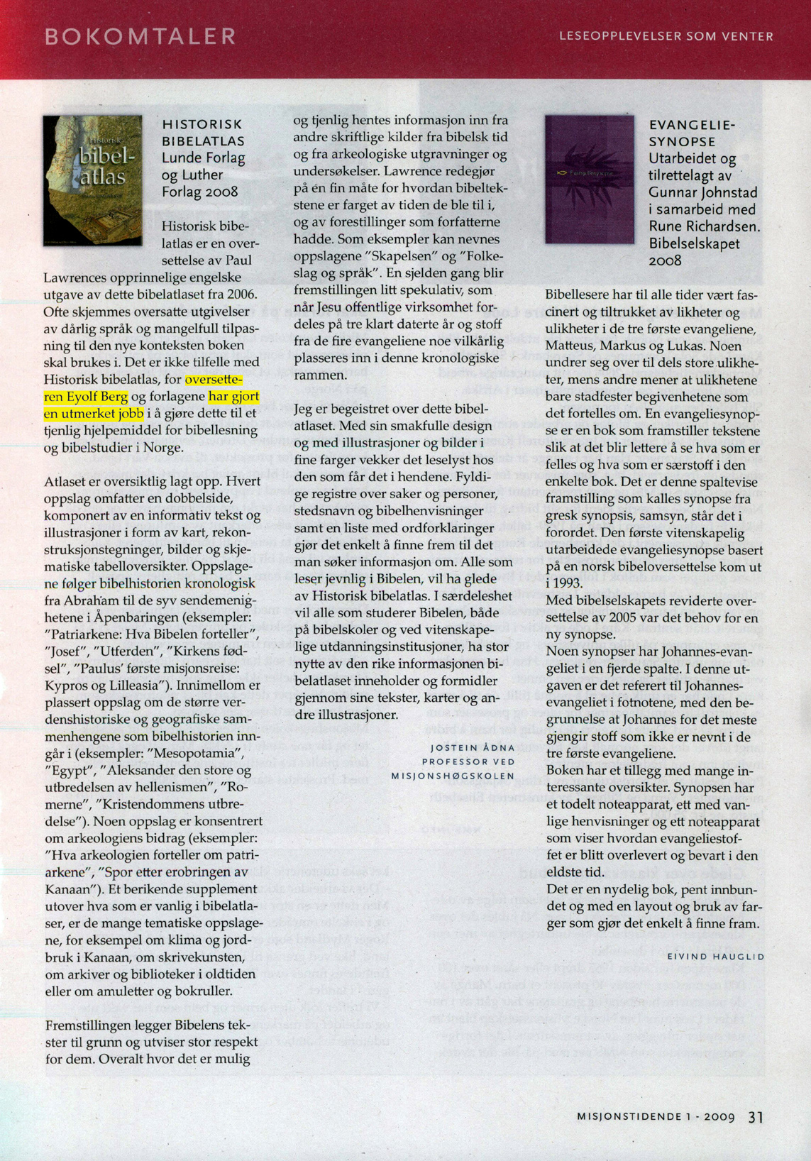 kommer fram i professor Ådnas anmeldelse av atlaset i Norsk Misjonstidende nr.