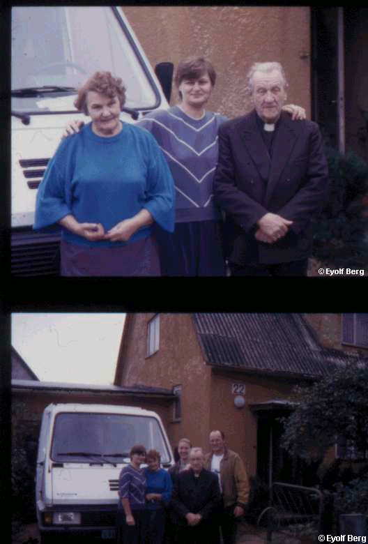 Med hjelpesending til Estland1.-8. oktober 1995InnledningEtter at prost Harald Tammur fra Tartu i Estland besøkte oss i januar 1988 som ledd i Presteforeningens solidaritetsarbeid for prester i den kommuniststyrte delen av Europa, hadde jeg hatt en stående invitasjon til å besøke ham i hans hjemland. Det hadde ikke manglet på lyst, men av ulike grunner hadde det ikke blitt til noe besøk. Harald var allerede i 1988 en gammel mann med sine 72 år, og jeg visste at helsen hans var alt annet enn god. Skulle jeg i det hele tatt avlegge ham et besøk, kunne det ikke vante i det uendelige, og våren 1995 bestemte styret i Larvik prostilag av Den norske kirkes Presteforening at jeg skulle dra som prostilagets representant. Til å dekke reiseutgifter stilte prostilaget kr. 1500 til rådighet. Det ble klarert med biskopen at jeg kunne definere reisen som tjenestereise, på samme måte som da jeg var i DDR i 1989. Vi visste at det hersket stor mangel på mange ting i Estland. Spesielt var det nevnt oljeprodukter, barneklær og elektroartikler. Fra mange hold kom det tilbud om ulike artikler jeg kunne få med som gaver, og etter hvert ble det klart at den beste løsningen ville være å kjøre til Stockholm og ta ferge over. Larviksområdets bensinstasjoner stilte til rådighet et større kvantum motorolje, forstvæske og andre artikler. Dagligvarehandlene bidro med kaffe, te og andre ting, elektroforretningene med diverse husholdningsapparater, distriktets to møller med over et halvt tonn hvetemel, og fra mange hold strømmet det inn klær. Dette var mye mer enn jeg kunne få med meg i en personbil. En av distriktets transportbedrifter tilbød meg da å låne 2,5-tonns varebil. Den eneste betingelsen som ble satt, var at det kun skulle benyttes vestlig dieselolje. Av erfaring visste man at dieselolje fra sovjetiske raffinerier ville ødelegge mer ømfintlige, vestlige motorer. Til alt hell hadde Statoil akkurat åpnet sine første bensinstasjoner i Estland, og en undersøkelse viste at både i Tallinn og i Tartu kunne vi få kjøpt finskraffinert diesel hos Statoil. Samme firma påtok seg også å ordne med alle tollpapirer frem til den estiske grensen. I løpet av forberedelsene ble vi også kontaktet av Larvik Metodistkirke med forespørsel om vi kunne ta med en del gaver til et prosjekt de støtter hos metodistkirken i Estland[1]. Det gjorde vi med stor glede. Thor Andreas Moe sa seg villig til å bli med som hjelpesjåfør, og da det viste seg at bilen var registrert for 3 personer, tilbød jeg Vebjørn å bli med også. Det ville ikke koste mer enn fergebilletten Stockholm-Tallin og tilbake – og knapt nok det, for lugaravgiften var den samme enten vi var to eller tre. Dessuten var det greit å ha med en som kunne holde kjørende sjåfør med selskap når hvilende sjåfør trengte å sove. Reisetidspunktet ble lagt til skolens høstferieuke for å slippe å be Tor Andreas og Vebjørn fri fra skolen.