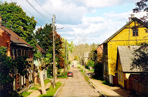 Inne i lokstallen ble jeg plutselig praiet av en russisktalende jernbanearbeider som ikke likte at jeg fotograferte. Jeg fikk pelle meg derfra hvis jeg ikke hadde spesialtillatelse. Jeg svarte på samme språk med å spørre om vi befant oss i sovjetrepublikken Estland eller i det frie og demokratiske Estland. Denne dialogen ble overhørt av en overordnet funksjonær som fant den rett så fornøyelig og ga mannen klar beskjed om at jeg var velkommen til å se og fotografere så mye jeg bare ville. Torsdag 05.10Etter frokost ble bilen hentet i garasjen, og vi satte kursen sørover mot Ahja. Her skulle vi besøke det prosjektet som Larvik Metodistkirke støtter, et senter som den lokal metodistmenigheten er i ferd med å bygge opp for psykisk utviklingshemmede. Etter hvert vil man også gi tilbud til andre funksjonshemmede og eldre. Siste nytt er planer om en telefontjeneste etter mønster av Kirkens SOS. Det er en del av et gammelt baroniet med en idylliske karpedam man har overtatt. Det vil bli et praktfullt anlegg når det en gang er ferdig. Og det trengs i et samfunn som gjennom snart 2 generasjoner lærte å forakte uproduktive mennesker og mennesker uten "forbindelser". Østlandsposten må gjerne si at man ikke ser tiggende pensjonister i Estland. Vi så dem! - og dem som lette etter mat i søpla[30]! Og tilbakemeldingene et halvt år etter, er at det vi hadde med, var en god hjelp for mange gjennom en hard vinter. Ettersom vi nå befant oss ganske langt sør i Estland, fant vi ut at vi ville prøve om det var mulig å komme en tur over den russiske grensen, en grense som i dag går lenger vest enn hva den gjorde tidligere. Det betyr at blant annet byen Petseri som er en gammel estisk by, i dag ligger på den russiske siden av grensen. Var det mulig å komme over og besøke den? Kursen ble satt sørover, på ny, flott vei[31], så ny at den ennå ikke var helt ferdigbygd. Men den gang ei! Allerede 2,5 km fra grensen[32] var det stopp. Grensetropper væpnet med skuddklare maskinpistoler[33] nektet alle som ikke hadde visum til Russland, å kjøre videre. Vi fikk klar beskjed at uten visum ville ikke russerne slippe oss over grensen, og det var heller ikke snakk om å få kjøre ned til grensen og la guttene få se over til den russiske siden. Fotografering av vaktposten ville de heller ikke vite av. Og hele tiden ble maskinpistolene holdt i skuddklar stilling. Vi hadde ikke annet å gjøre enn å gjøre vendereis. Men frekkheten lenge leve: Det var Tor Andreas som satt bak rattet, og jeg gjorde klar kameraet. Tor Andreas fikk beskjed om å snu slik at passasjersiden ville vende mot grenseposten, og i det vi hadde bredsiden mot, løftet jeg kameraet og fyrte av et bilde. Selvfølgelig ble vi oppdaget, men før noen rakk å reagere, var vi i god fart på vei nordover igjen. Hva skulle vi gjøre nå? Vi hadde fremdeles god tid før vi skulle være tilbake i Tartu igjen. Vi valgte å ta en annen og lengre vei tilbake. På kartet hadde vi sett at det gikk en vei på tvers fra den vi hadde fulgt og over til hovedveien mot Latvia. Vi valgte å følge den, og nå møtte det oss en helt annen veistandard enn den vi hadde opplevd hittil. Her var det ikke snakk om å feie av gårde i god fart. Det var ikke engang snakk om det vi hjemme ville kalle en grusvei. Det var sand som var måkt utover, og noen særlig underbygning syntes det ikke å være. Det ante oss at dette var den typen vei som de tyske styrkene kjørte seg så håpløst fast i både i høstregnet og i vårløsningen under 2. verdenskrig, den typen vei som knekte både Hitlers og Napoleons armeer. Vi var glade for at det var tørt, godt sensommervær, ellers tviler jeg på at vi hadde kommet gjennom. Veien gikk gjennom et frodig landbruksdistrikt, antakelig Estlands kornkammer, med store kollektivbruk, kolkhoser. Men for et forfall! Kolkhos-sentraene vi kjørte gjennom, virket fullstendig forlatte. Hus og driftsbygninger var i ferd med å falle sammen, og en mengde store landbruksmaskiner sto ute og bare rustet i stykker. Enkelte steder var de eneste transportmidlene som fungerte, hest og kjerre. Det var som å bli satt 50 år tilbake i tid. Kollektivbrukenes tid i estisk landbruk syntes definitivt over[34], og vi ble senere fortalt at samtlige kollektivbruk var oppløst og fordelt på de opprinnelige eierne og deres etterkommere. Dette førte imidlertid store problemer med seg. Mange av de opprinnelige eiernes etterkommere arbeidet i helt andre yrker enn landbruk, og slett ikke alle var interessert i å skifte yrke. På den andre siden hadde man fått en stor gruppe arbeidsløse landbruksarbeidere som manglet jord å arbeide på. Kun i få tilfeller var de gjenopprettede private gårdene store nok til at man hadde råd til å ansette folk. Resultatet var en kraftig nedgang i landbruksproduksjonen, og Estland som tidligere hadde vært i stand til både å brødfø både seg selv og å forsyne Leningrad-området, var nå nødt til å importere matvarer. Veil tilbake i Tartu beklaget Enn at vi ikke hadde fortalt ham på forhånd at vi tenkte oss ned til den russiske grensen. Da kunne han blitt med oss, og vi ville høyst sannsynlig fått slippe frem til selve grensen uten problemer. Akk ja! Han fortalte imidlertid at vi kunne ta en tur til den latviske grensen. Der ville vi ikke bare slippe helt frem, men også over. De tre baltiske landene har en pass- og visumoverenskomst som tilsier at visum til ett av landene gir adgang til alle tre, og landenes egne statsborgere trenger ikke ha med pass. Førerkort eller annen legitimasjon holder.