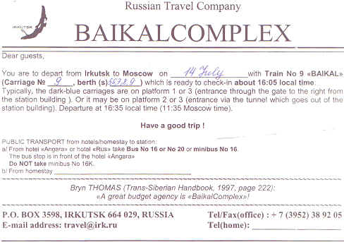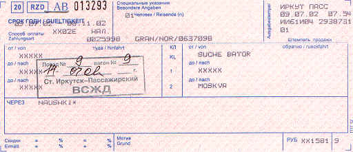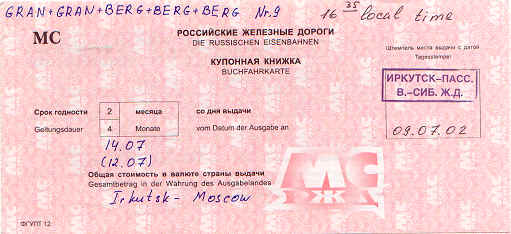 Reisedokumenter Irkutsk - Moskva:
